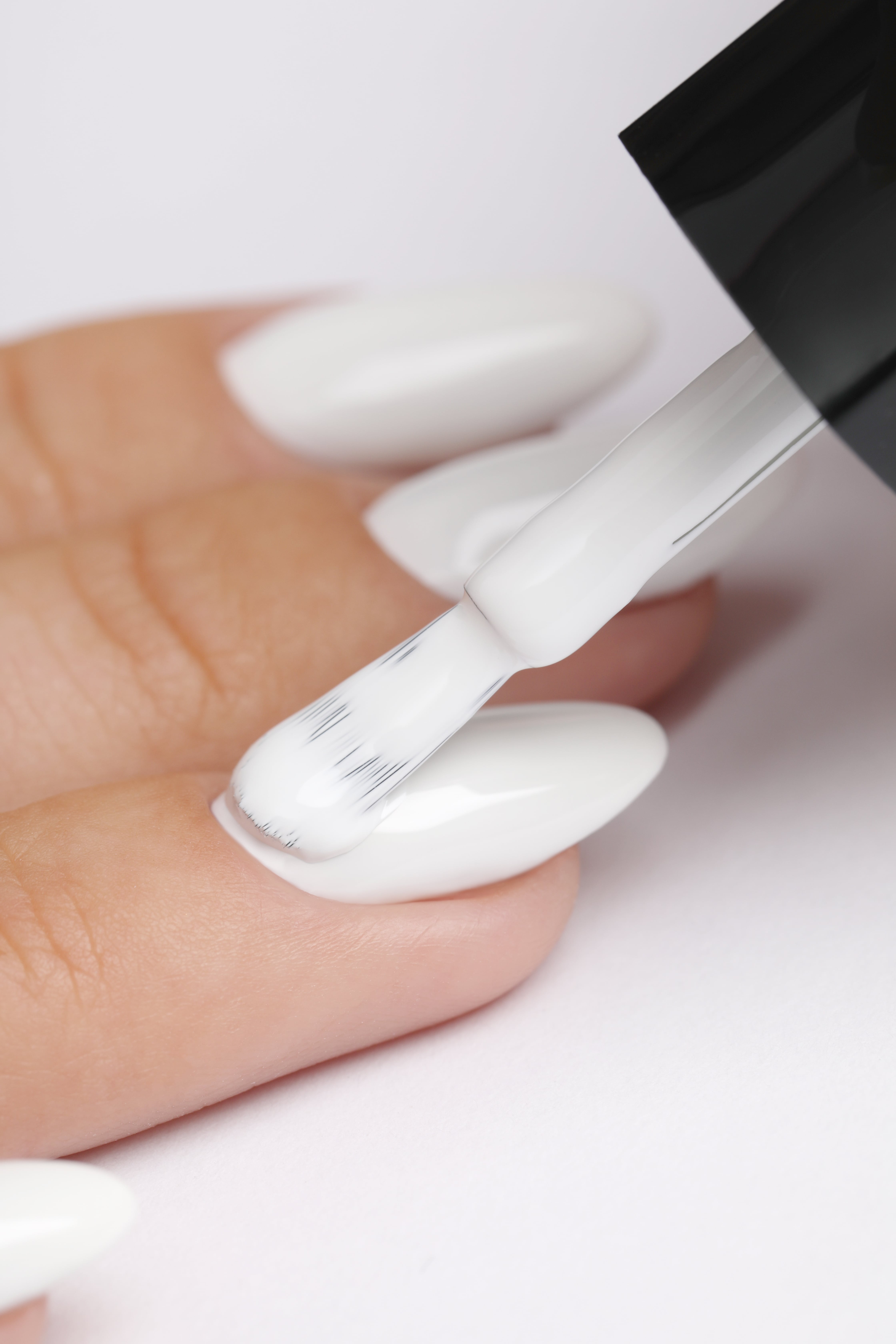 • Благодаря полукруглой кисти, повторяющей анатомическую форму ногтевой пластины, материал наносится легко и ровно, не растекается, без полос и разводов.