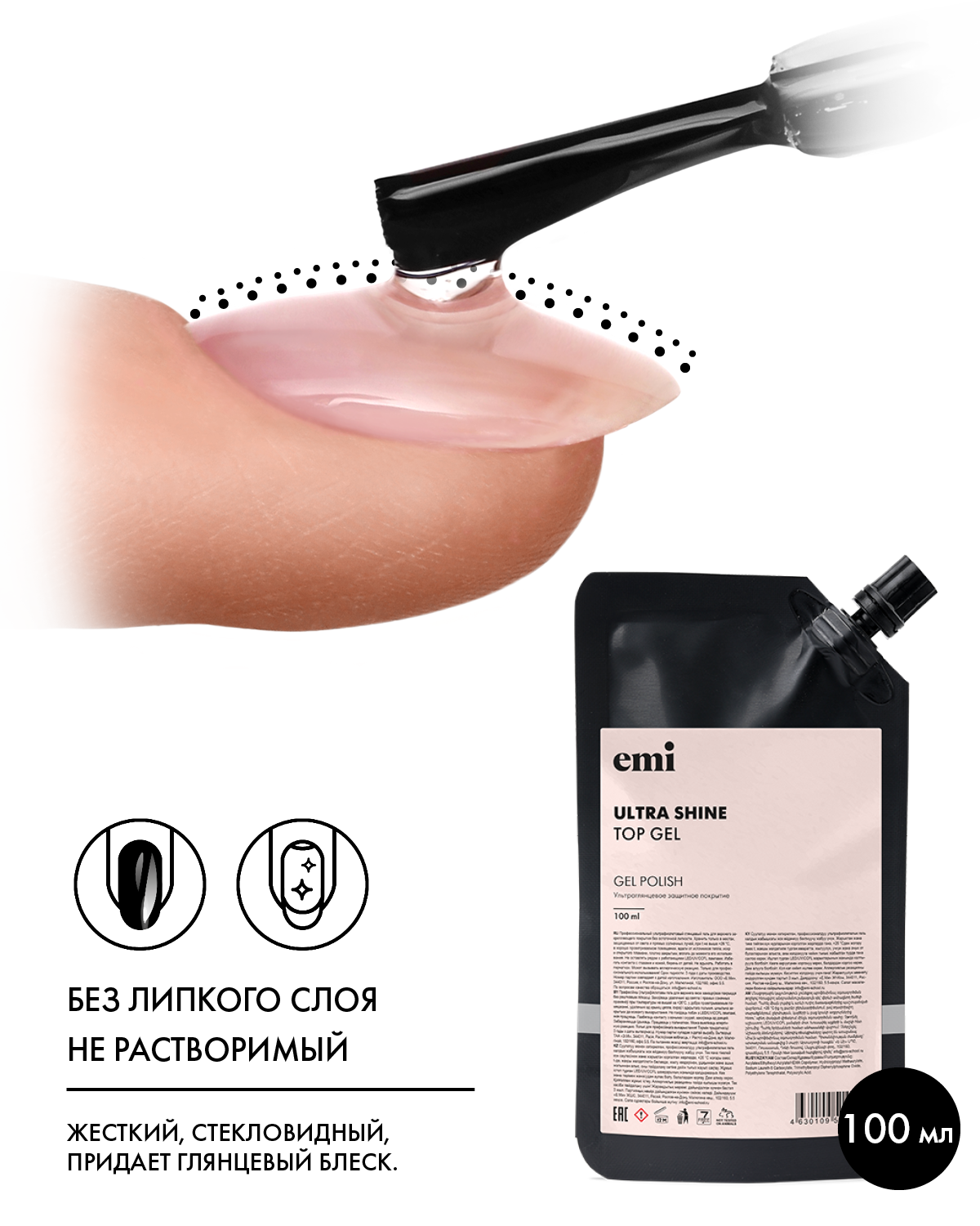 E.MiLac Ultra Shine Top Gel, 100 мл.