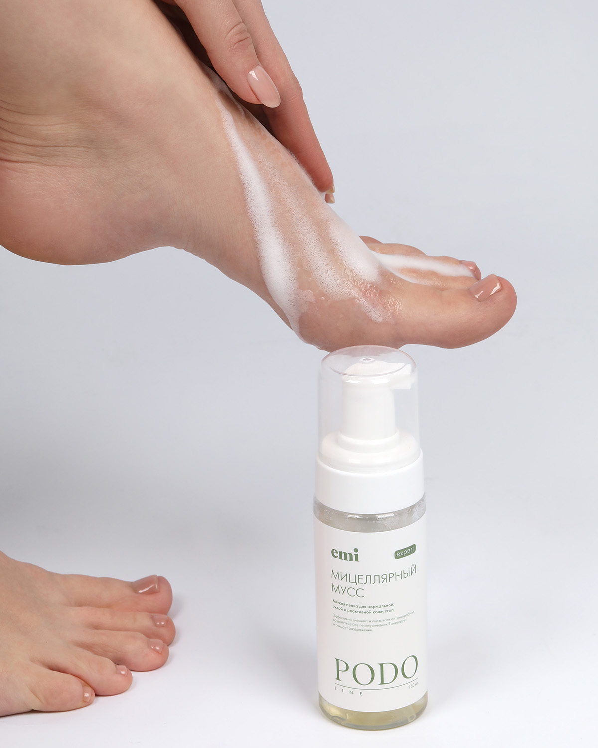 Мицеллярный мусс – мягкая и нежная пенка с воздушно-пенистой текстурой для нормальной, сухой и реактивной кожи стоп.